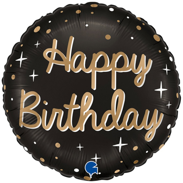 G Шар (18"/46 см) Круг, HAPPY BIRTHDAY, Черный. 1 шт.