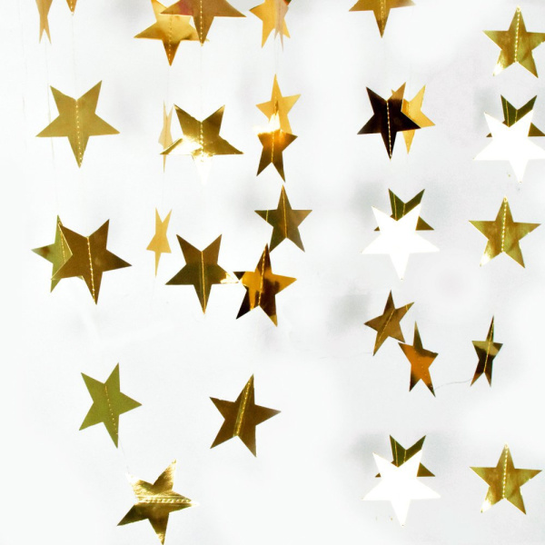 Гирлянда-подвеска Звезда, Золото, Металлик, 200 см, 7 см*20 шт, 1 уп.