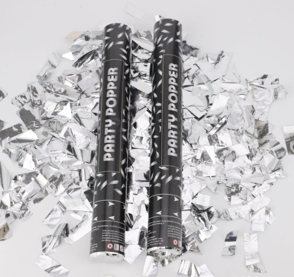 Пневмохлопушка, Серебро, Конфетти металлик, 30 см, 1 шт.